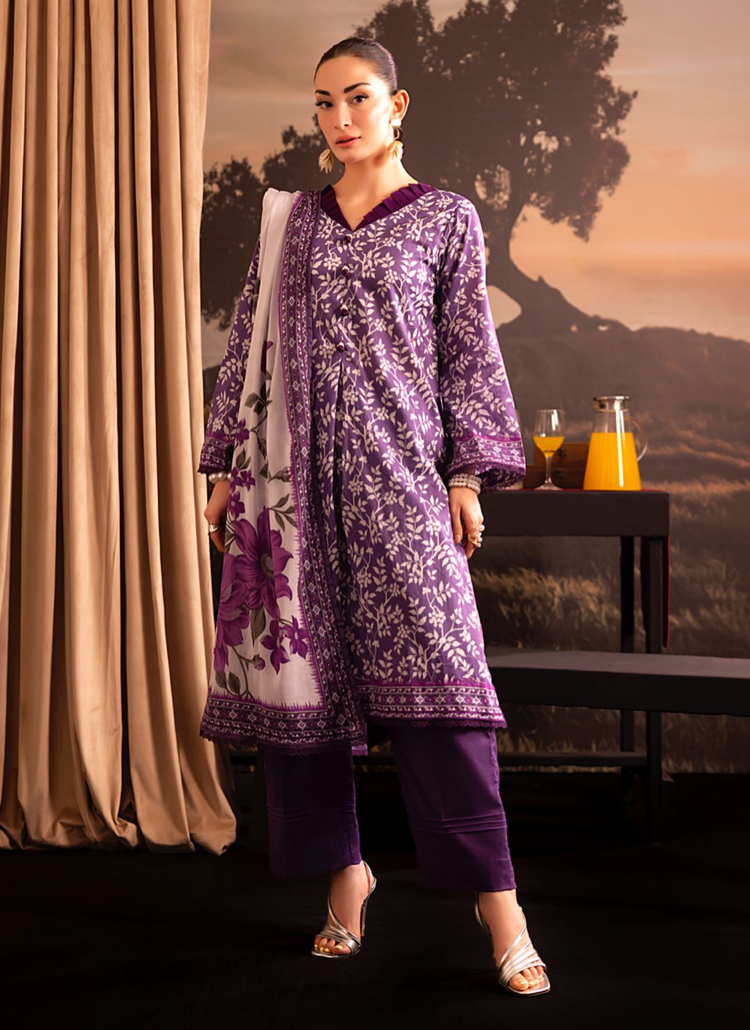 Elevate your wardrobe with this sophisticated cambric lawn ensemble, crafted for modern elegance. The digital printed lawn shirt features vibrant, intricate patterns that capture contemporary style, while the dyed cambric trouser offers a refined, coordinated base in complementary tones. Complete the look with the matching digital printed dupatta, adding versatility and grace to your outfit. Perfect for casual gatherings, office wear, or festive occasions, this three-piece set combines premium fabric quality with expert craftsmanship. Cambric lawn's breathable nature ensures comfort throughout the day, making this ensemble an essential addition to your collection.