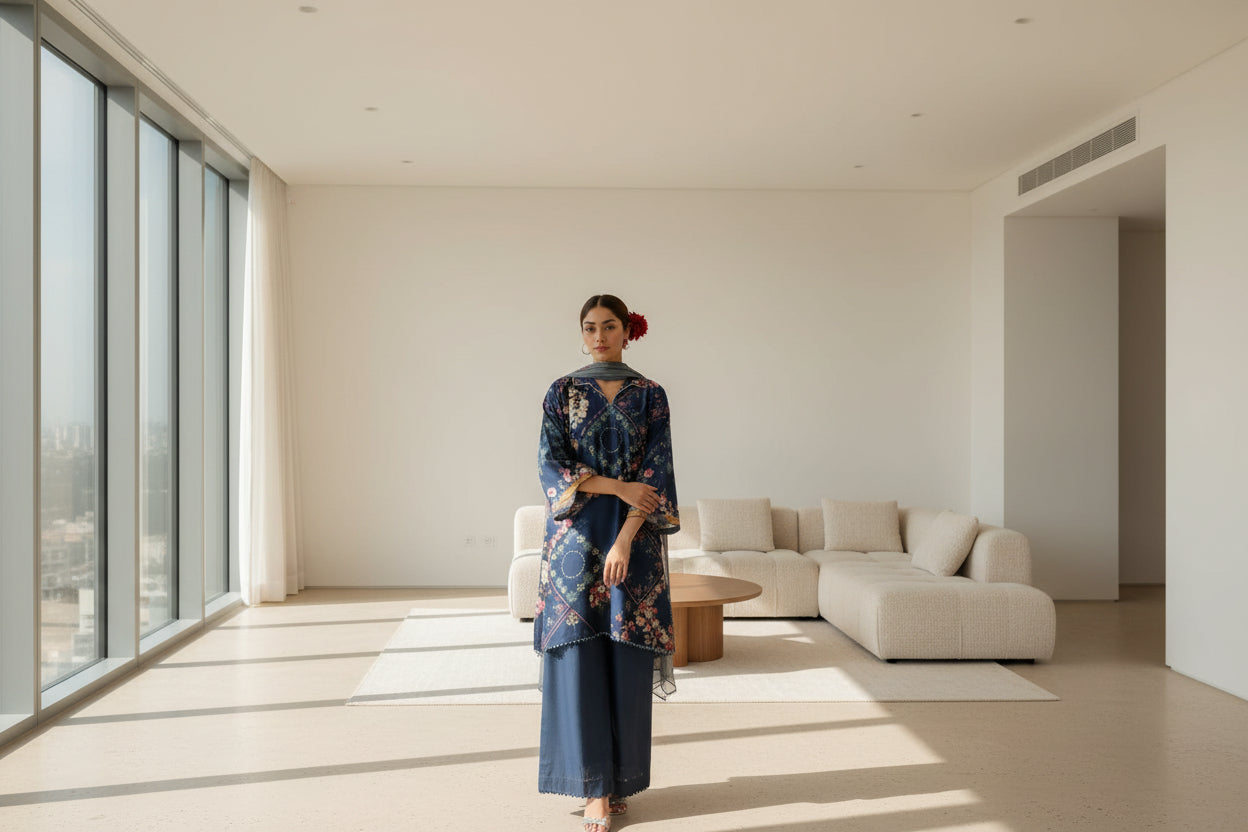 • Shop elegant 3 piece printed suit for women. Includes shirt, trouser & dupatta. Perfect for festive and semi-formal wear. Comfortable, stylish & trendy eastern outfit.